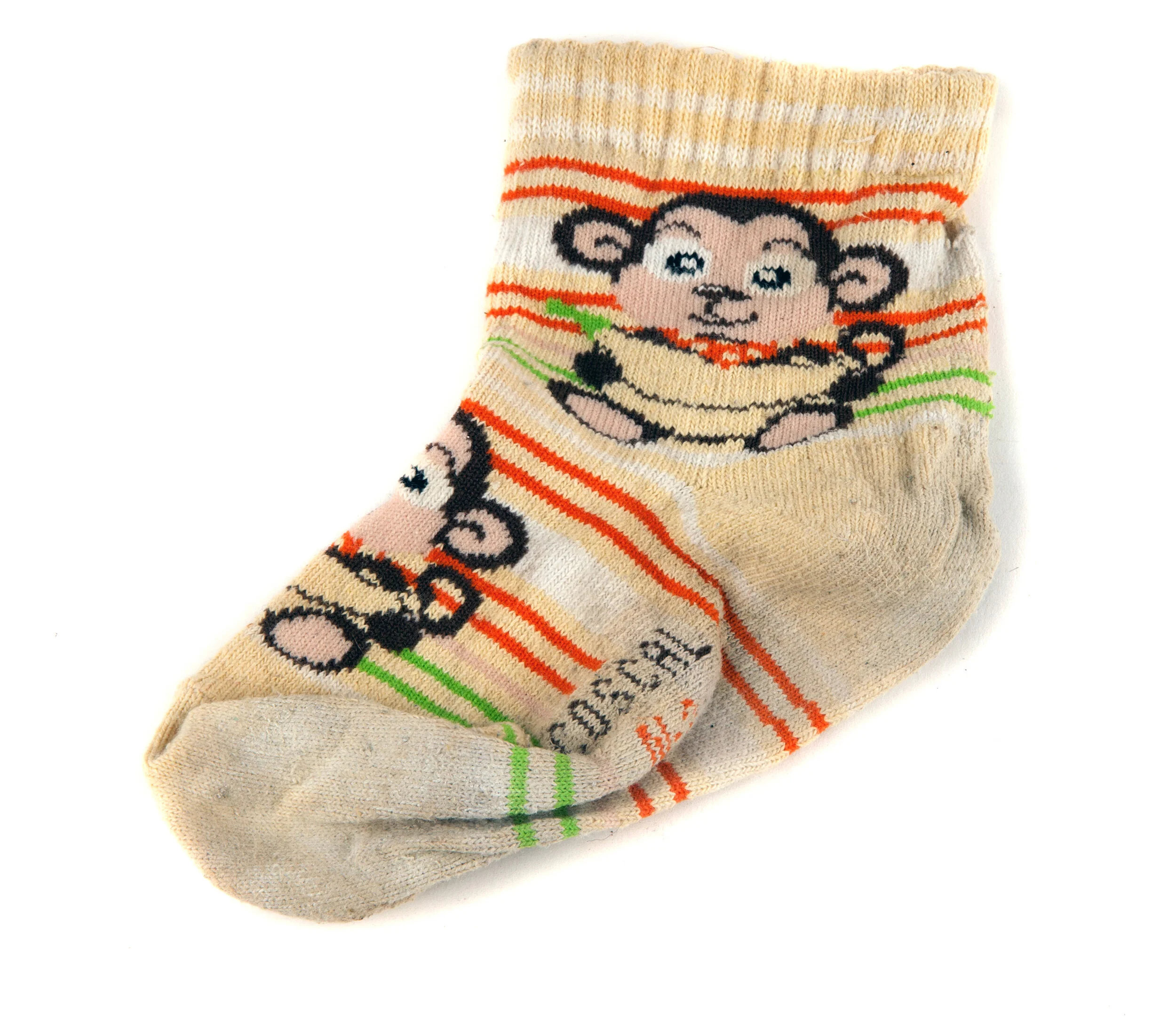 A sneaker wrapped in cloth to disguise footprints.